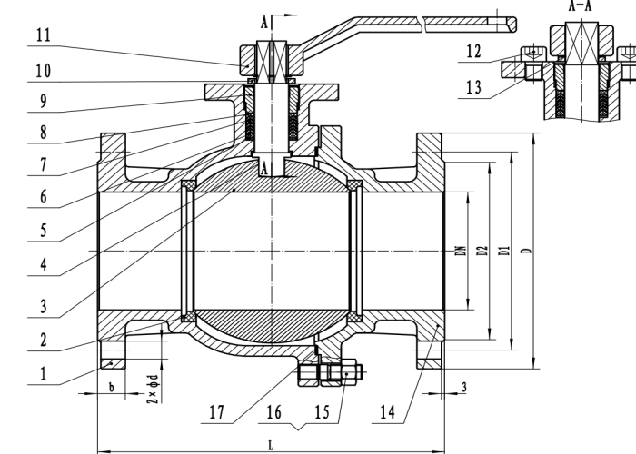 The valve is composed of valve body, ball, valve stem, packing gland, limit plate, handle and other parts. The handle parallel to the pipeline axis indicates that the valve is in the open position, and perpendicular to the pipeline axis indicates that the valve is in the closed position. The opening and closing can be realized by turning the handle 90 °